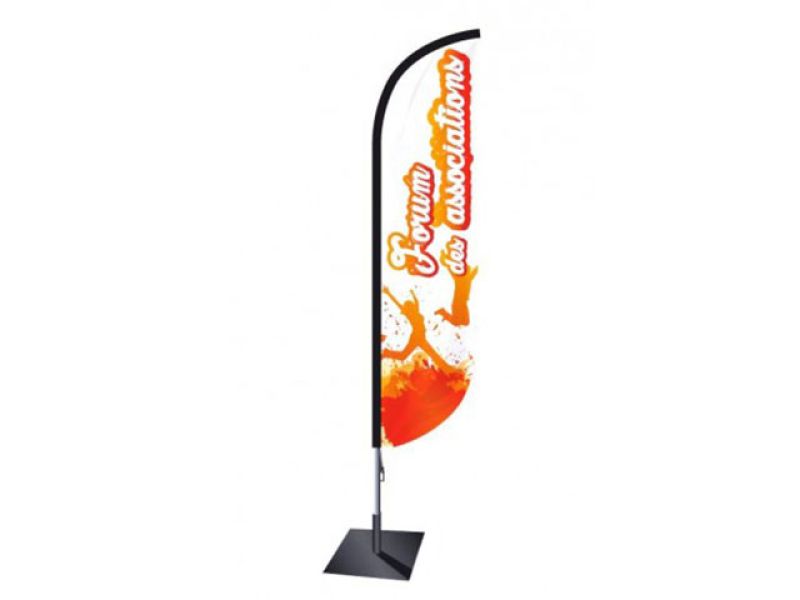 Ce dispositif tout-en-un est composé d'une voile personnalisée, d'un mât un d'un pied. Il permet de communiquer facilement en extérieur :
